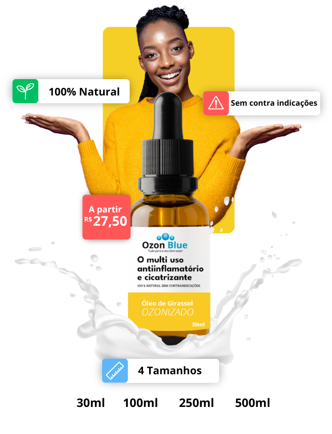 Este produto não tem contraindicações, por que é formado por Óleo de Girassol 100% natural prensado a frio e Ozônio gerado a partir de um equipamento especifíco, para Óleos Ozonizados.